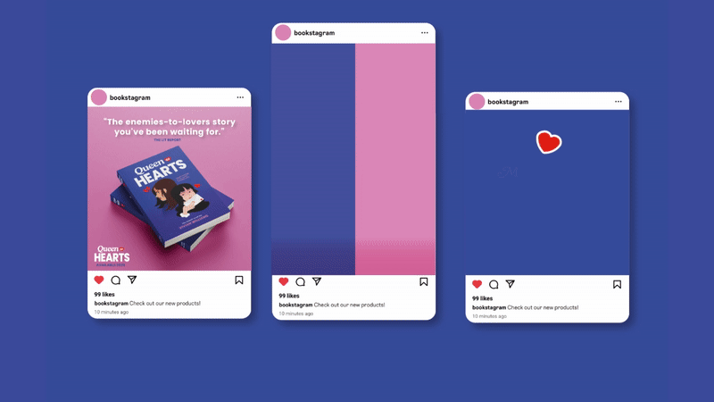 Personal project creating marketing materials for a faux romance novel called “Queen of Hearts”.